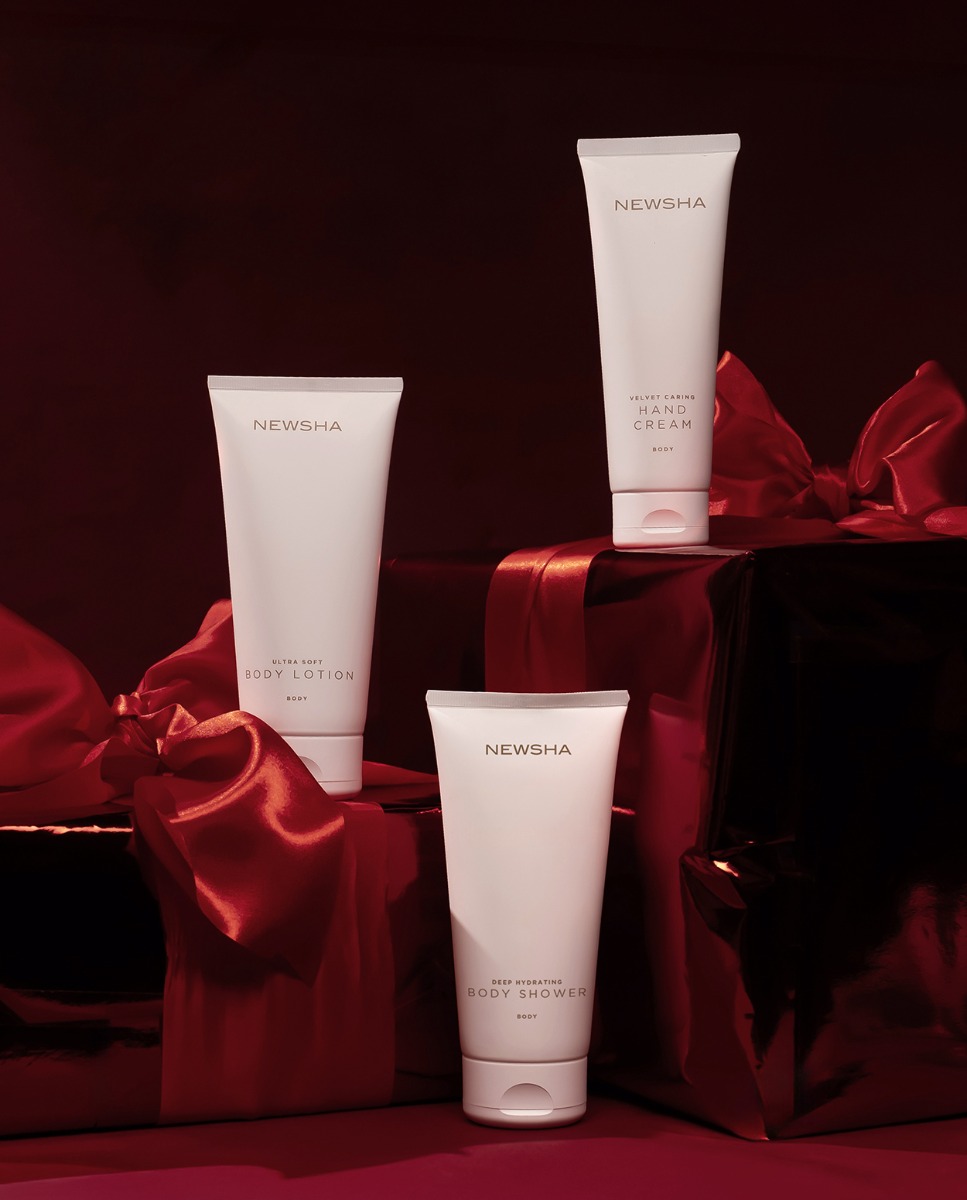 Willkommen in der exklusiven NEWSHA Christmas Collection – wo festliche Eleganz auf hochwertige Pflege trifft und Geschenke zu besonderen Erlebnissen werden.